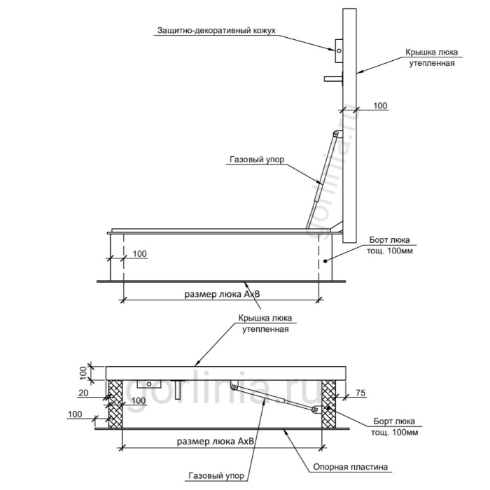 Элементы фурнитуры нижнего открывания лаза на крышу