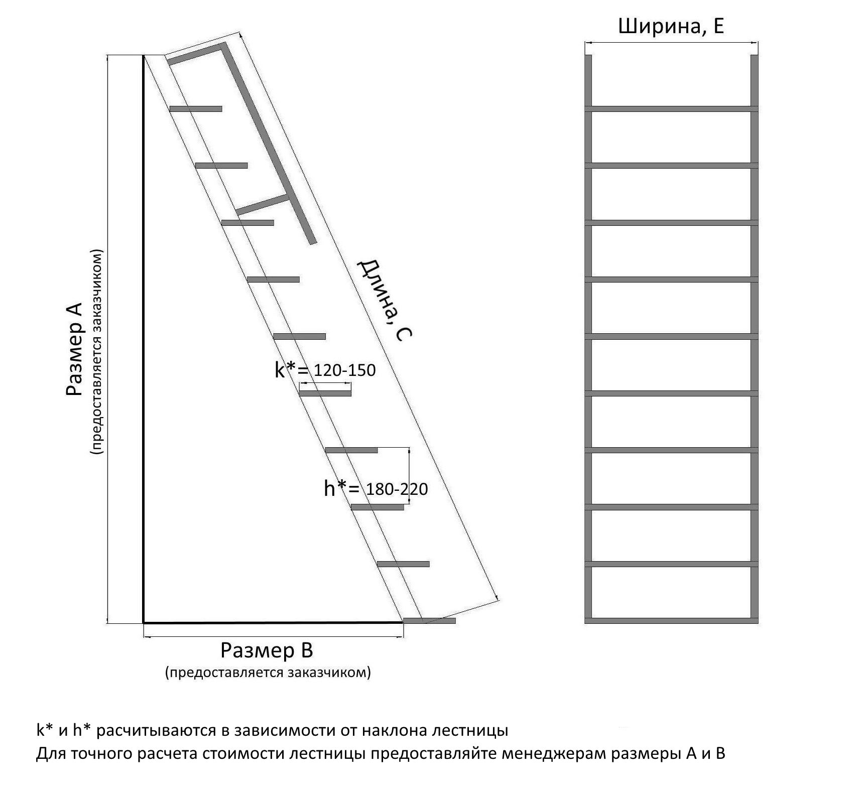 Обратите внимание, предлагаем удобные лестницы в погреб не только в виде готовых вариантов. Выполним расчет расстояния между ступенями и их глубину исходя из наклона угла подъема, изготовим в соответствии с ГОСТ и СНиП по вашим чертежам, требованиям, пожеланиям.