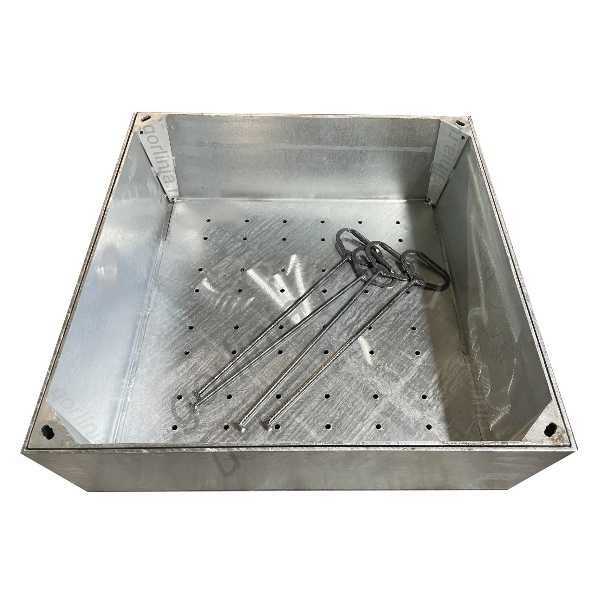 Полую крышку вынимают специальными крюками по углам корыта. Для удобства установки рекомендуем заказать исполнение с дополнительными крепежными ушами (пластинами). Усиление крышки ребрами также является дополнительной комплектацией (см. галерею фото)
