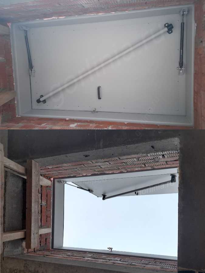 Рекомендуем заказать дополнительную лебедку для облегчения подъема створки с технического этажа после выпадения снега в зимнее время.