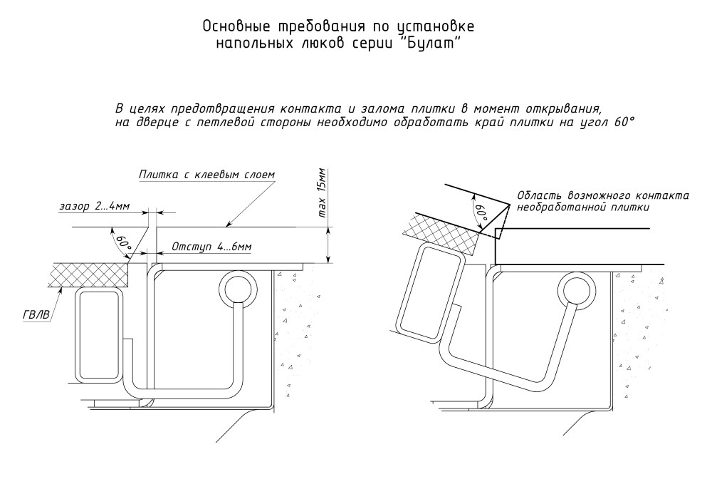 Конструкция смещенного за ось открывания узла шарнира позволяет изготовителю сформировать опорную поверхность по стороне петли, сохранив при этом ширину лаза 700 для удобного спуска по приставной лестнице в подполье.