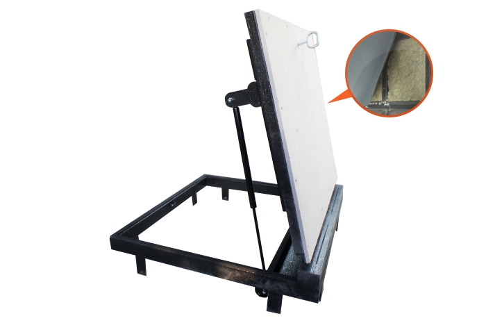 Рама без наличников выставляется в существующем отверстии 97*90 см с допусками, крепится в перекрытии через вертикальные пластины даже когда Ваш ремонт закончен и пол выложен керамогранитом или настелена ламинированная доска.